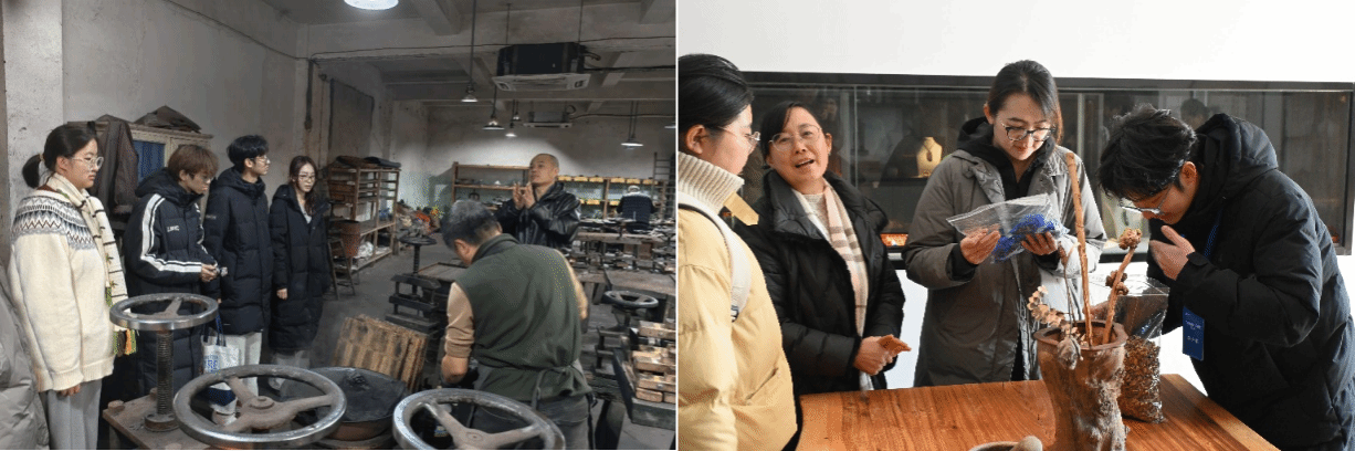 在百年老字号胡开文墨厂,成员们参访点烟、和胶、描金、制墨、晾墨等十二道古法工序,在一捧一揉之间深刻感悟工匠精神。此外,团队成员通过分组调研,对徽州歙砚、徽墨、沉香等6个非遗传承项目进行实地调研。