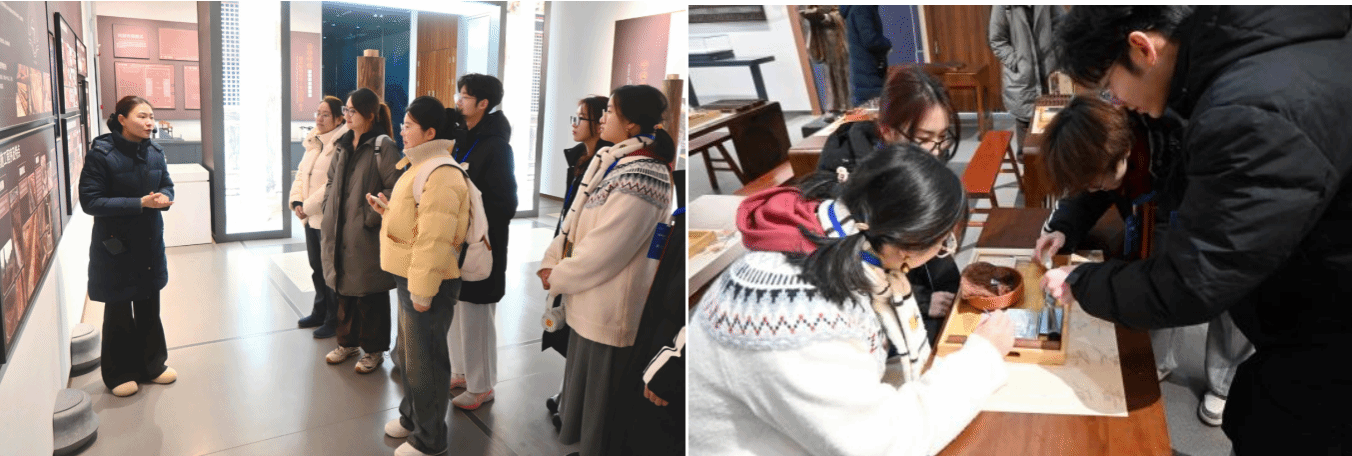 在黄山市非物质文化遗产馆,成员们探索徽州古建筑历史脉络、观摩3D建模复原、聆听数字民歌悠扬旋律、体验文房四宝的翰墨书香,感悟徽州非遗跨越时空的恒久魅力。