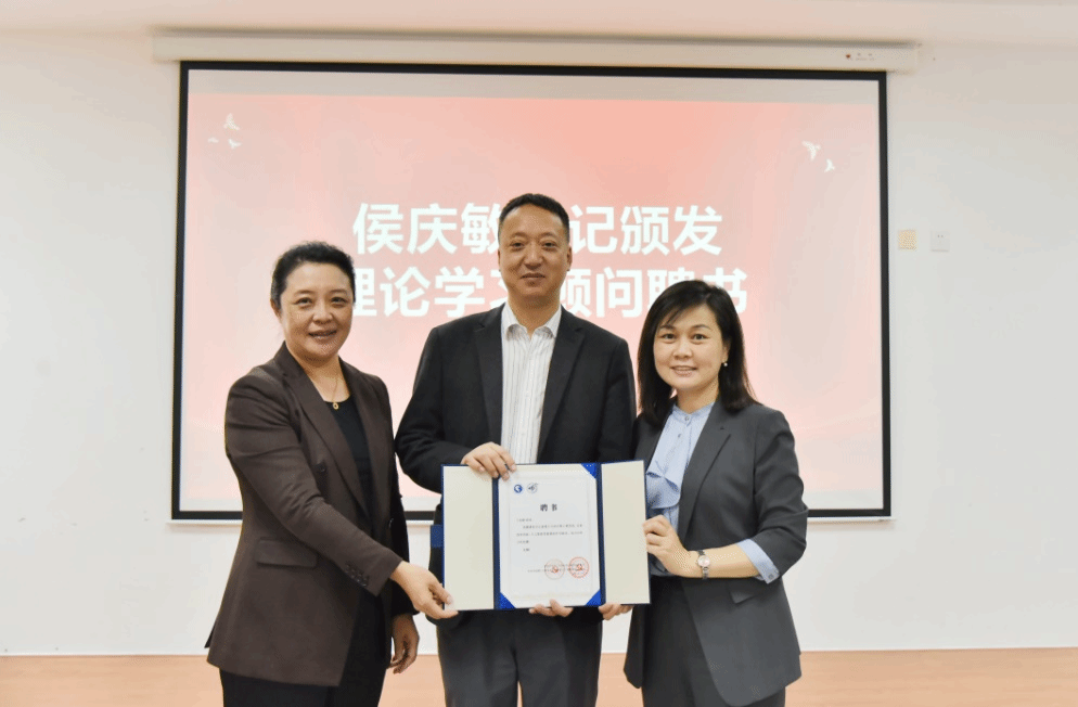 讲座结束后,学院党委书记侯庆敏与生物工程学院党委书记杨君共同为丁永健颁发理论学习顾问聘书。