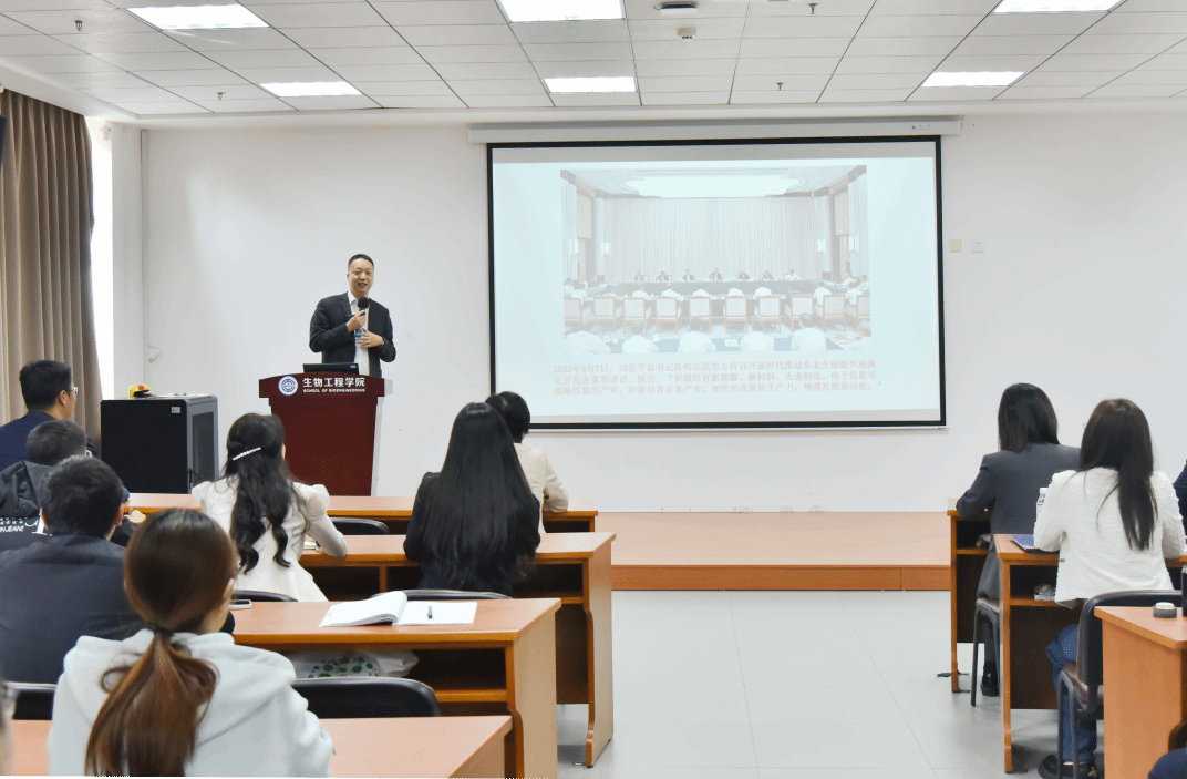 为进一步深化学习党的二十届三中全会精神,充分发挥党建引领作用,加强院系间的交流学习,10月9日下午,学院党委与生物工程学院党委在知微楼116报告厅联合开展向“新”提“质”学习贯彻党的二十届三中全会精神联学共建活动。活动邀请经济管理学院副院长丁永健以“面向新质生产力的拔尖创新人才培养”为题进行专题讲座。两院党政领导班子成员及全体教师参加学习活动。活动由生物工程学院党委副书记兼副院长、纪委书记李明智主持。