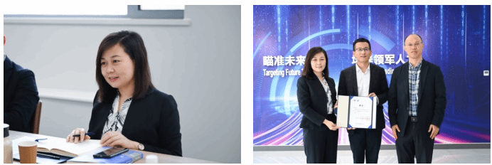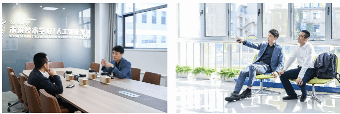 讲座开始前,张晓军与未来技术学院/人工智能学院副院长郭艳卿共同探讨ILEAD培训及深度合作方案。