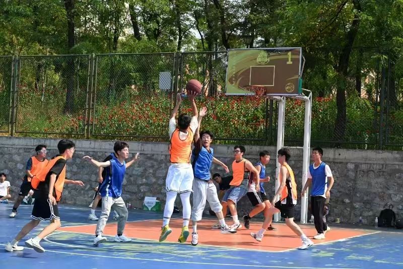 球场上,双方选手在球场上尽情挥洒汗水,积极攻守,球员们巧妙的传球、灵动的身姿、严密的防守、精准的投篮与观众的呐喊助威声相互辉映,形成篮球场上一道亮丽的风景线。