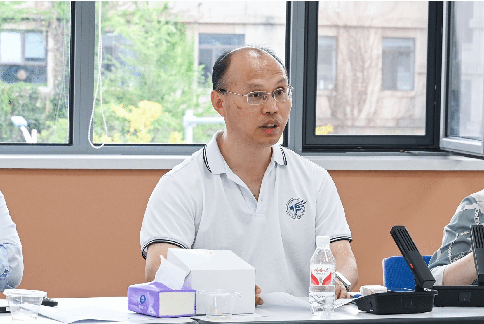 学院执行学院卢湖川向学院全体教师致以节日祝福,向两位新入职教师表示欢迎,并为新教工佩戴院徽。