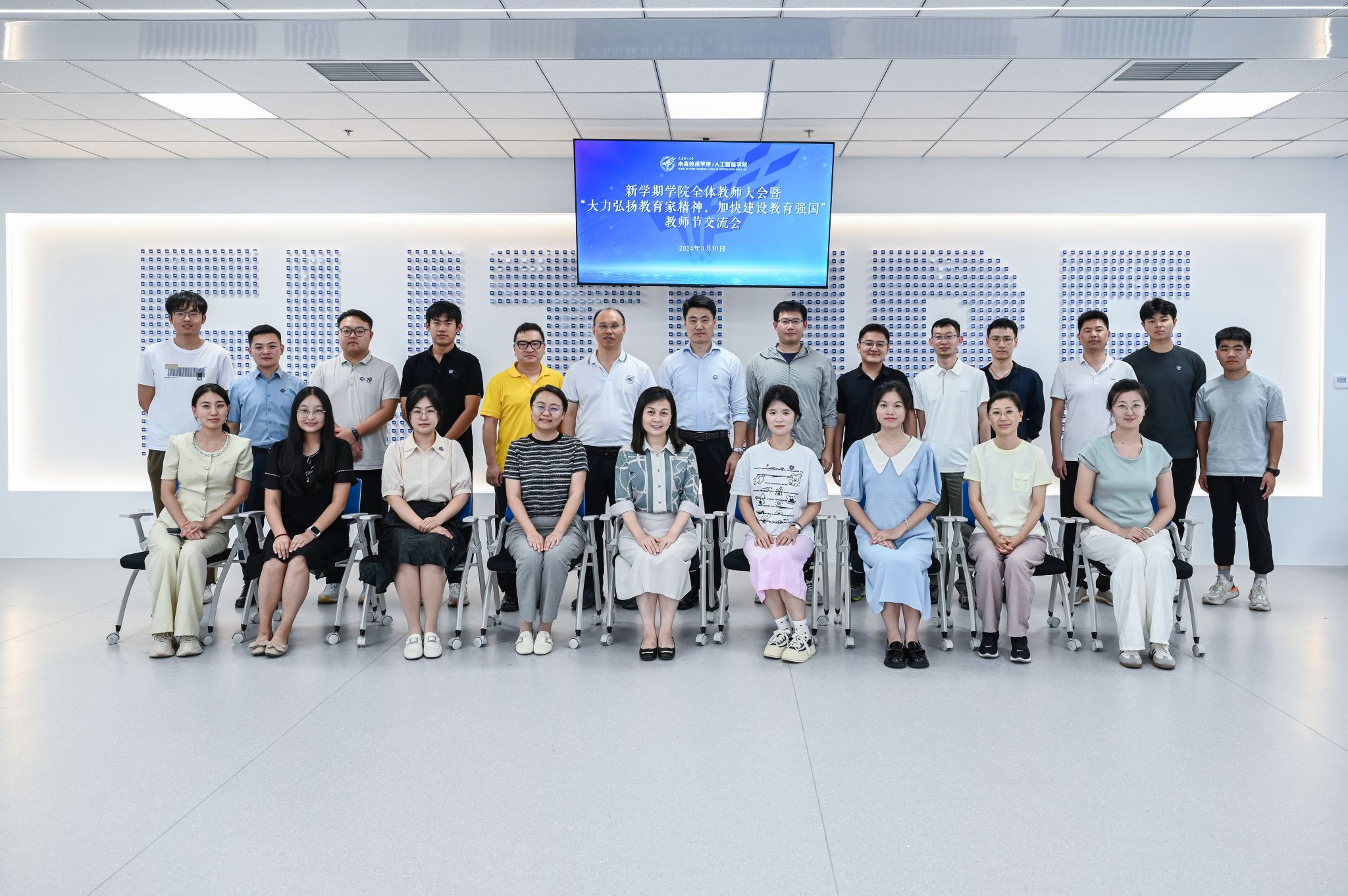2024年9月10日,在第四十个教师节来临之际,未来技术学院/人工智能学院在学院楼206会议室召开新学期学院全体教师大会暨“大力弘扬教育家精神,加快建设教育强国”教师节交流会,深入贯彻落实全国教育大会精神,推进建设新时代高水平教师队伍,凝聚学院教育教学工作卓越发展强大合力。学院党政班子成员、全体教师、新入职教师参与会议。会议由学院党委副书记、副院长、未来书院副院长孙智妍主持。