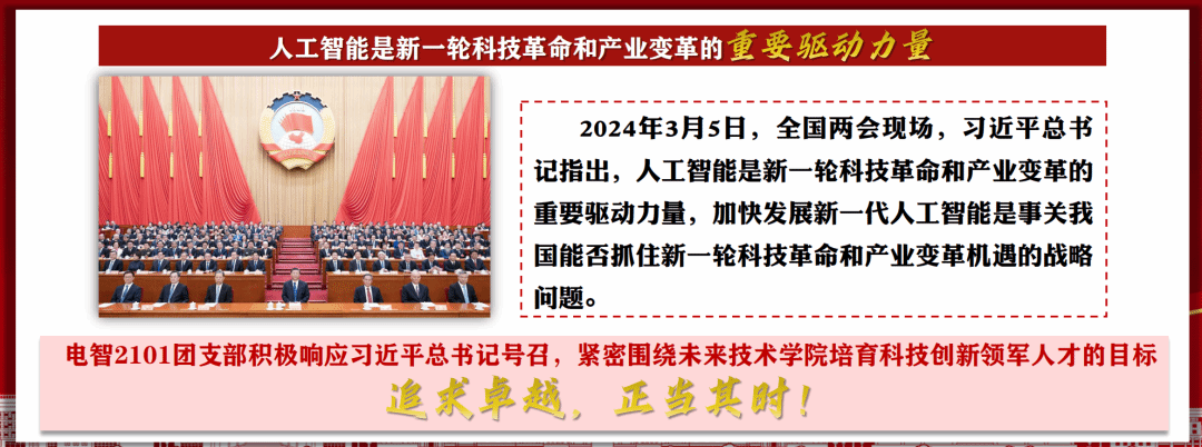 身为未来学子,电智2101团支部的同学将不负时代所托。为国家AI产业奉献青春,早日破解行业“卡脖子”难题,为新一轮产业变革贡献力量!