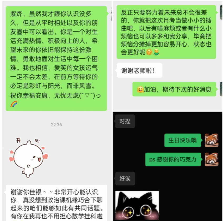 在这个充满温情与感动的活动中,同学们积极参与,以自己的方式,将友善和正能量通过微信消息传递给了身边的人。未来家收到了许多投稿,有同学为曾经支教的小朋友们带去鼓励的话语,告诉他们无论遇到什么困难,都要勇敢地面对,坚持自己的梦想;有同学向父母表达了感激与思念,感谢父母无私的爱和支持;也有同学感谢身边朋友的陪伴、朋友的帮助、朋友的指引。在这次活动中,同学们通过微信消息把友善和正能量带给了身边的每个人,给他们带去了温暖和幸福。