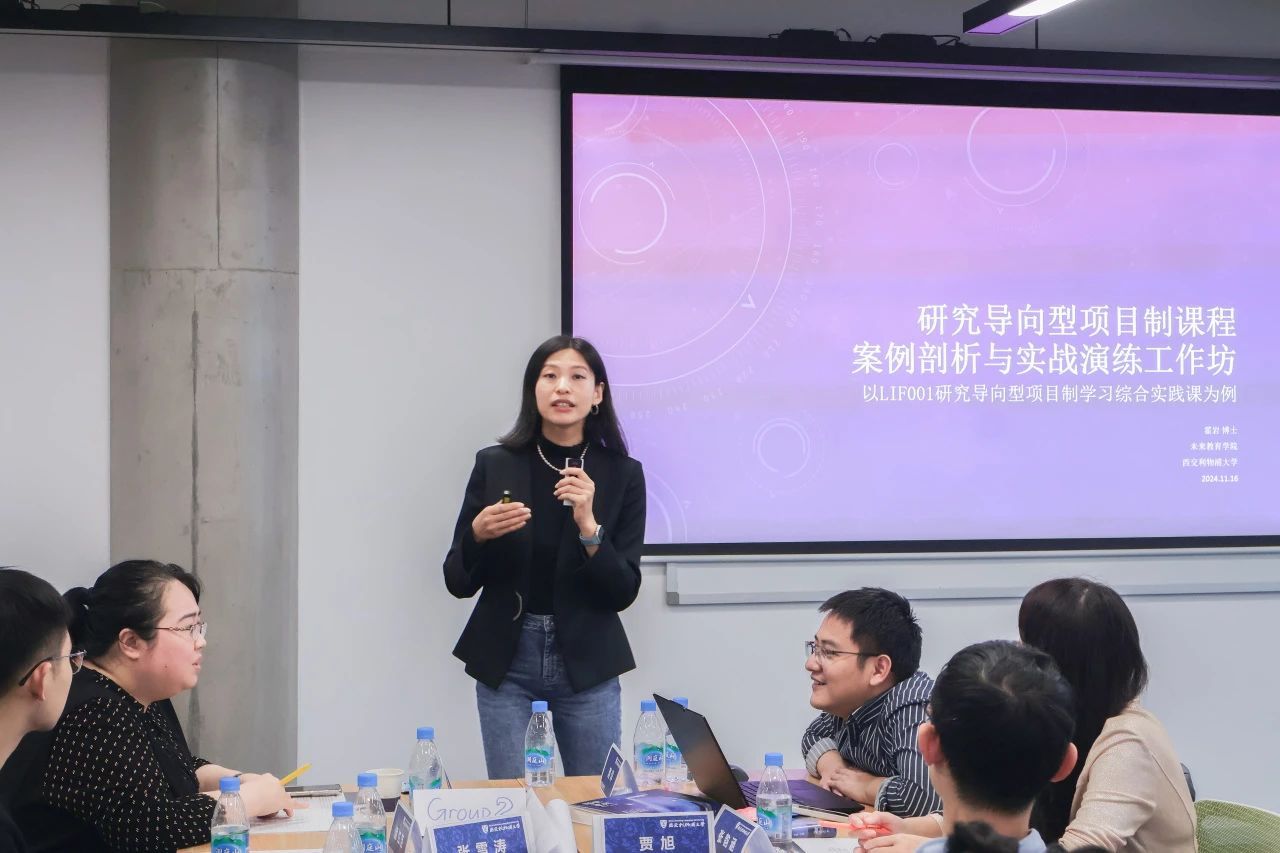 西交利物浦大学未来教育学院助理教授霍岩以研究导向型项目制学习综合实践课为例,深入剖析了项目制学习的精髓与实战策略。霍岩老师详细介绍了课程的创新教学模式,包括线上学习资源的充分利用、线下咨询渠道的建立,以及四门迷你课程的融入。霍岩指出,学生通过主导项目,从实际问题出发,探索解决方案,可以为其个性化成长和发展奠定坚实基础。在课堂上,霍岩邀请所有参与老师们以小组的形式反思过往教学教育工作中,如何采用项目制的方式来提升学生学习的参与度,提高自己以及团队的工作效率,激起了参训教师的热烈讨论和热情分享。