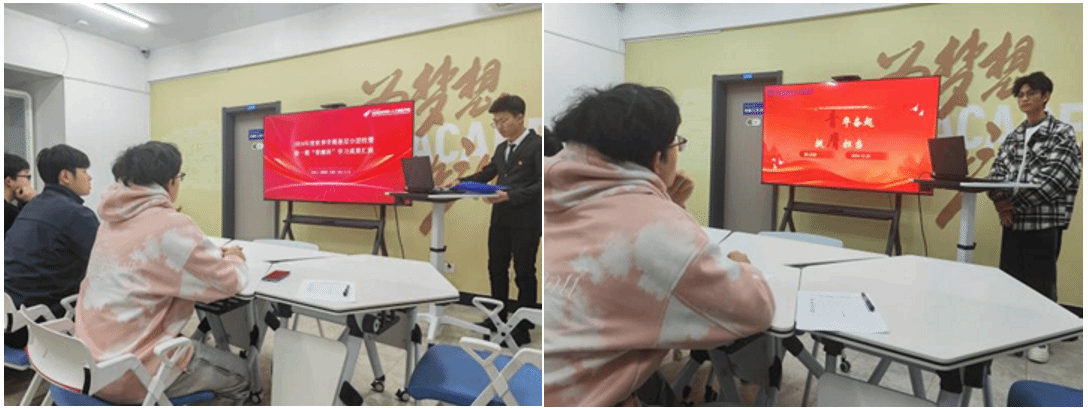 优秀团支部代表第五临时团支部与“青膺班”第一期秋季分团校培训优秀学员代表余沁腾同学分别展示了各自的培训成果与心得体会。