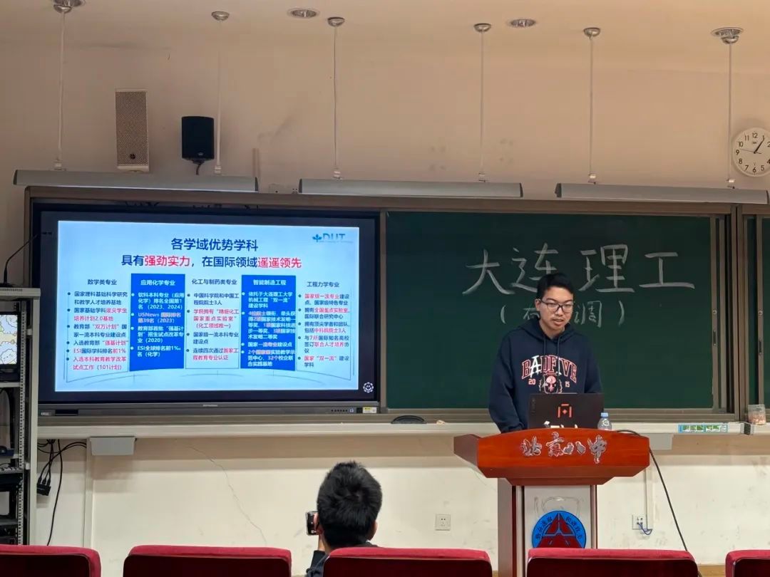 2025年1月18日,大连理工大学赴北京母校行实践队前往位于北京市延庆区的北京市延庆区第一中学。秦天跃同学代表大工进入班级进行宣讲,重点介绍了大工的未来技术学院和未来书院。他结合自身的学习经历,帮助高三学子树立学习生涯规划意识,解决他们对未来选择的迷茫与困惑。宣讲结束后,许多同学表示将以考入大工为目标,努力拼搏,追逐梦想。