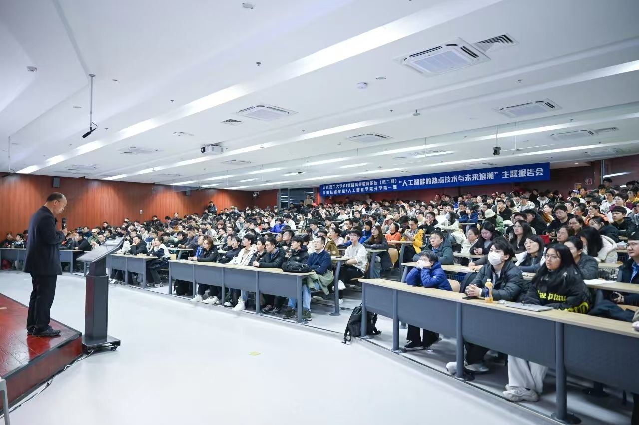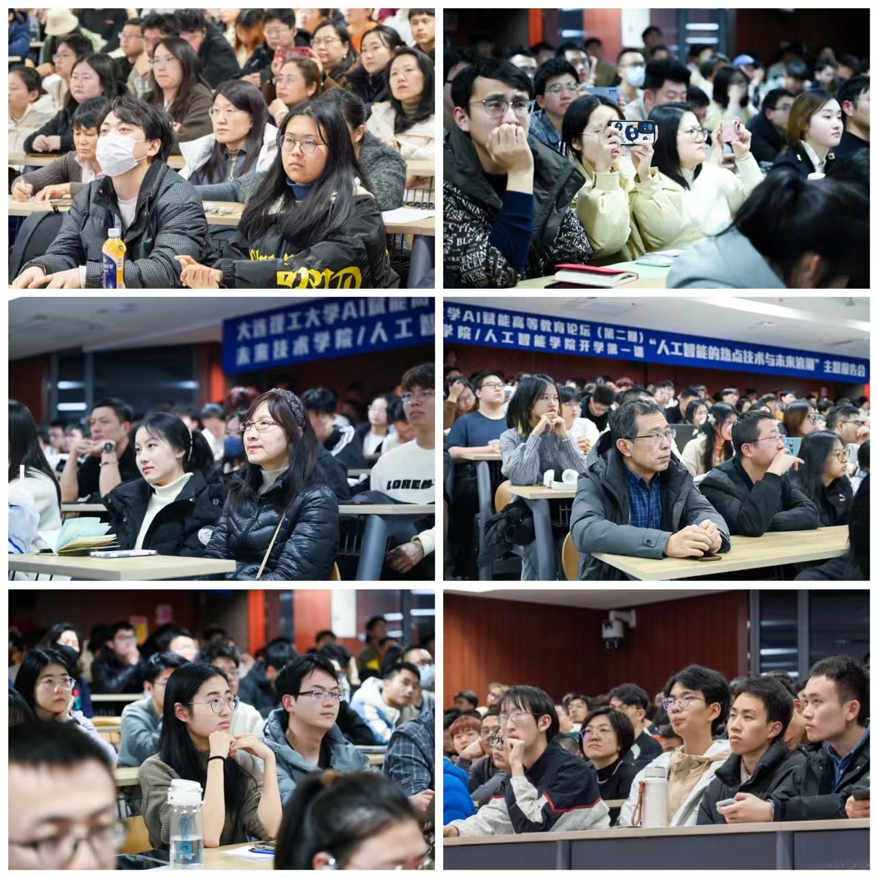 2025年2月25日晚,大连理工大学学生创新实践中心报告厅内座无虚席。由教师发展中心和未来技术学院/人工智能学院联合主办的大连理工大学AI赋能高等教育论坛(第二期)、未来技术学院/人工智能学院2024-2025学年春季学期开学第一课暨“能力超市”AI应用赋能篇正式启动。450余名师生在线下参与活动,5.2万余人次观众通过线上直播同步观看讲座,共同探讨国产大模型崛起背景下AI赋能教育的创新实践。