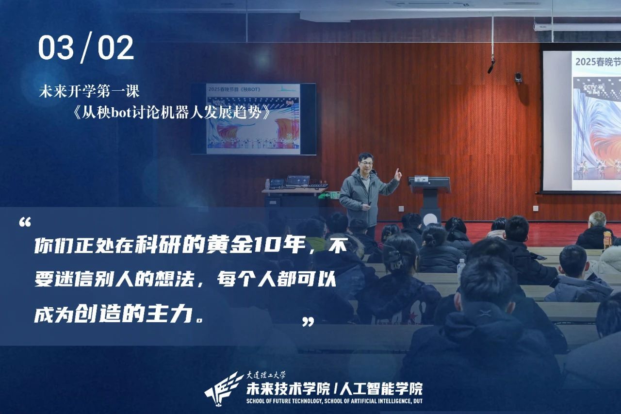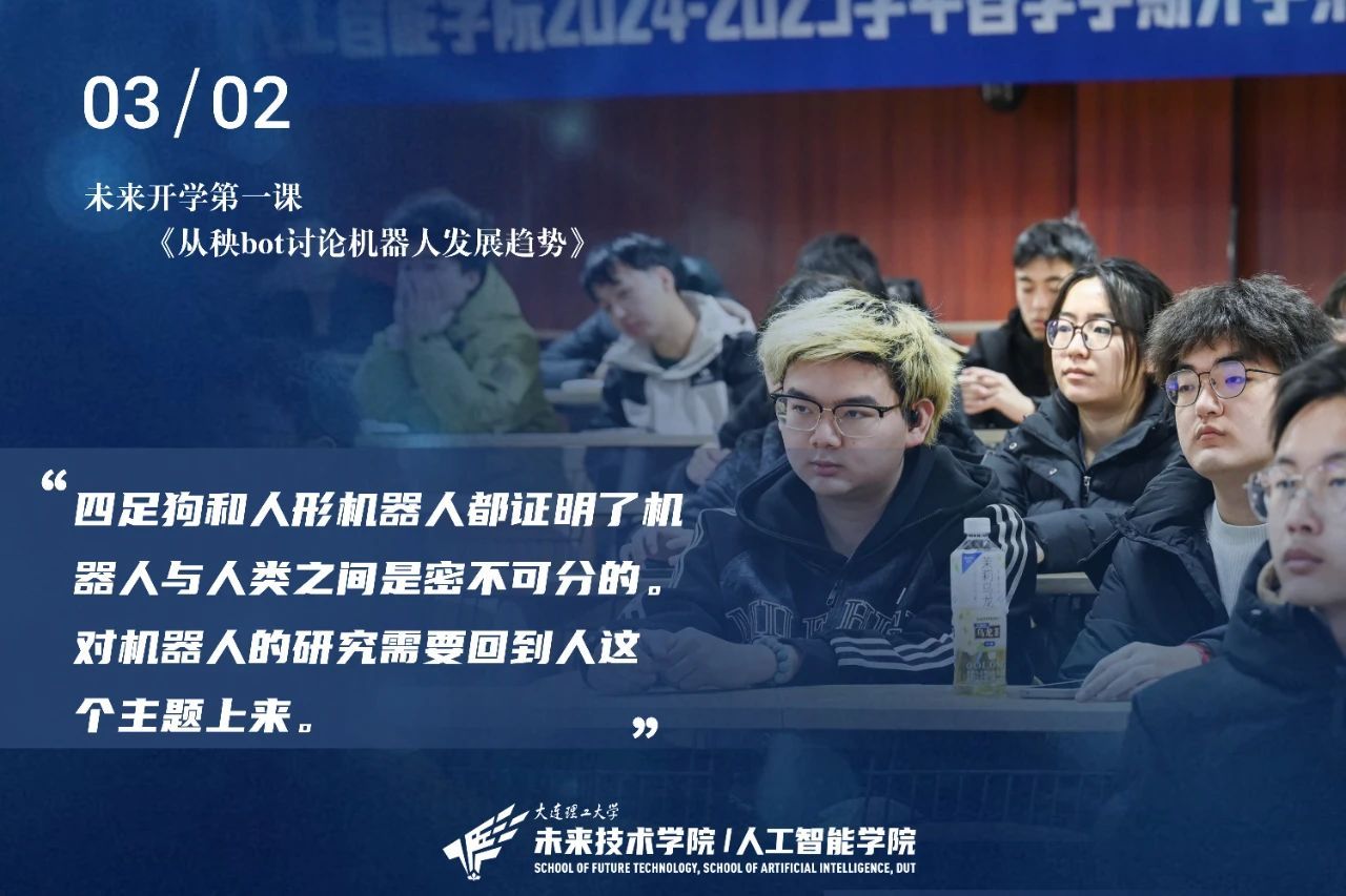 2025年3月2日,大连理工大学未来技术学院开展了2024-2025 年春季学期开学第一课 ——《从秧 bot 讨论机器人发展趋势》。大连理工大学控制科学与工程学院学术委员会主任、博士生导师庄严和大连理工大学控制科学与工程学院/人工智能学院智能机器人方向副教授,博士生导师张雪涛老师聚焦热门的机器人话题,为同学们带来了一场知识盛宴。