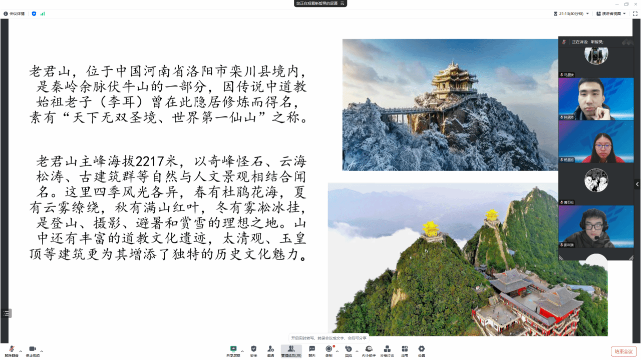 为增强团员之间的互动与凝聚力,深化对家乡文化的认知和情感联系,未来2301团支部于2025年1月组织了主题为“打卡家乡”的团日活动。活动通过腾讯会议平台线上举行,通过分享各自家乡的美食、风俗、景色等特色文化,同学们更好地了解彼此,加强对传统文化的认同感和归属感。