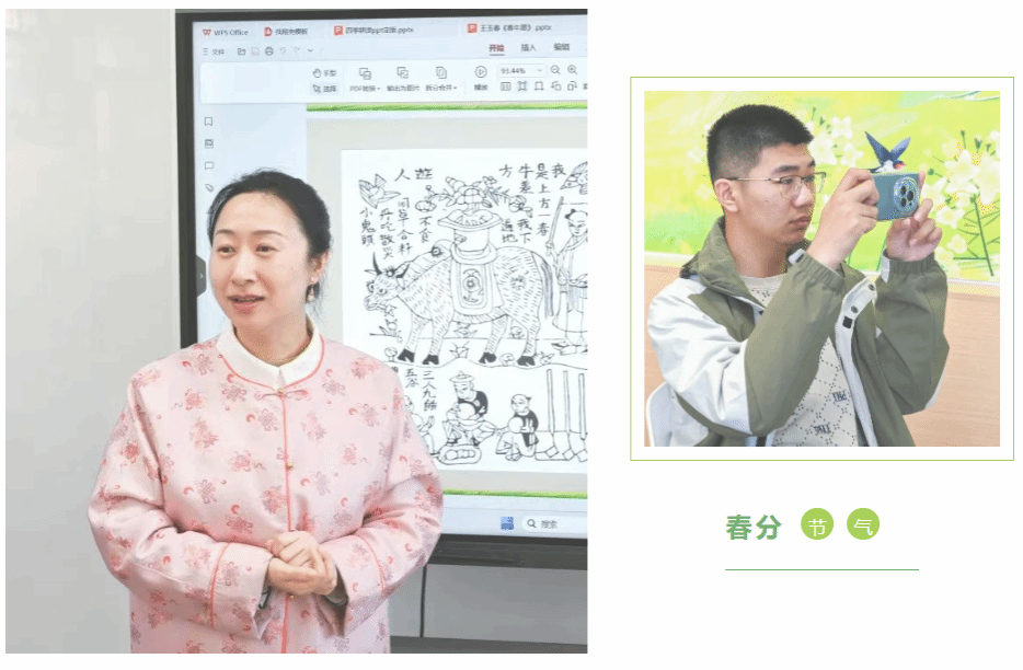 “昼夜平分,南雁北归。人们在这一天会竖鸡蛋、吃春菜……”春分课堂的帷幕,在刘姝瑾老师对物候和风俗的趣味解读中拉开。