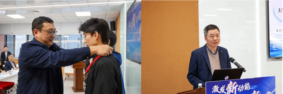 随后,江贺发布了未来创新创业中心建设方案。未来创新创业中心立足“双院协同、学科交叉、AI赋能”定位,着力打造覆盖基础课程、实践训练、赛事培育、项目孵化、产业转化的全流程育人体系。中心将建设“AI创客空间”、开设双创通识课程,并设立“未来π”跨学科创意挑战赛,每年投入专项经费支持设备升级、赛事组织和团队培育,推动构建学科交叉、科教融汇、产教协同的创新生态。