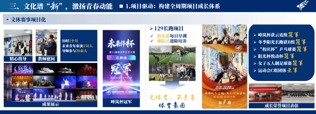 文体赛事项目化,结合领军人才培养目标,以项目式学习模式推进文化活动赋能学生成长。