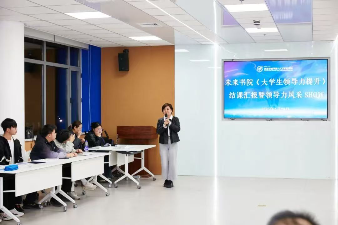 未来技术学院党委副书记、副院长、未来书院副院长孙智妍在总结中对经济管理学院为未来书院量身定制的优质课程表示感谢,同时也希望能依托校团委、大工书院等育人平台,为未来学子搭建起领导力培养的实践舞台,助力他们在多元实践中锤炼领导能力、培育责任担当。她强调,此次未来书院“未来治平计划”《大学生领导力提升》课程的圆满结束,是一场知识与实践的深度碰撞,更是未来书院探索学院、书院协同育人的创新探索。未来书院主动适应新时代对人才的全新要求,以"修身、齐家、治平"三级进阶育人计划为牵引,构建起知识传授筑基、能力培养强翼、价值塑魂立格的三维育人坐标系。通过打造"学科交叉+虚实结合+情境浸润"的创新培养范式,将领导力培养深度融入未来领军人才的成长基因,充分发挥教育教学创新先导区作用,助力学生实现内涵发展、特色发展与创新发展,为服务国家创新驱动发展战略输送兼具科技硬实力与领军软实力的新时代的“科技尖兵”与“领军人才”。