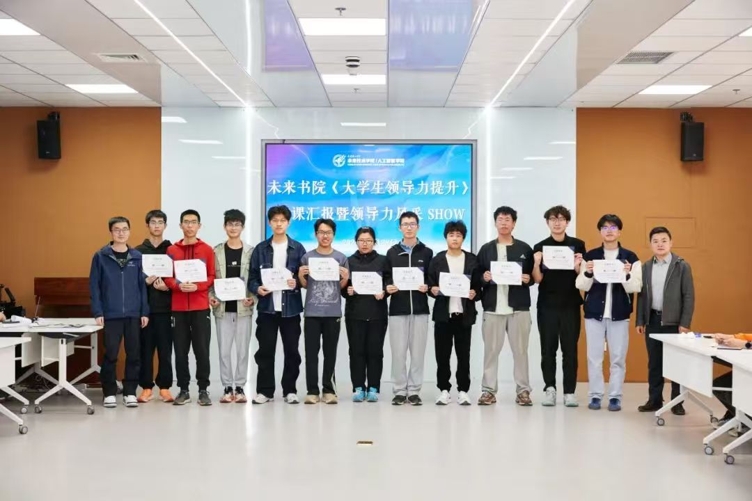 近日,未来书院-未来治平计划《大学生领导力提升》结课汇报暨领导力风采SHOW在未来技术学院206举行。汇报现场,校团委副书记刘达蔚、经济管理学院党委副书记、副院长杨木、大工书院综合管理室主管于瑾泉、《大学生领导力提升》授课教师、经济管理学院副教授商华、未来技术学院党委副书记、副院长、未来书院副院长孙智妍、未来书院学生工作办公室主任张萌、未来书院24级辅导员李佳明、王思佳参与结课汇报评审,结课汇报由孙智妍主持。
