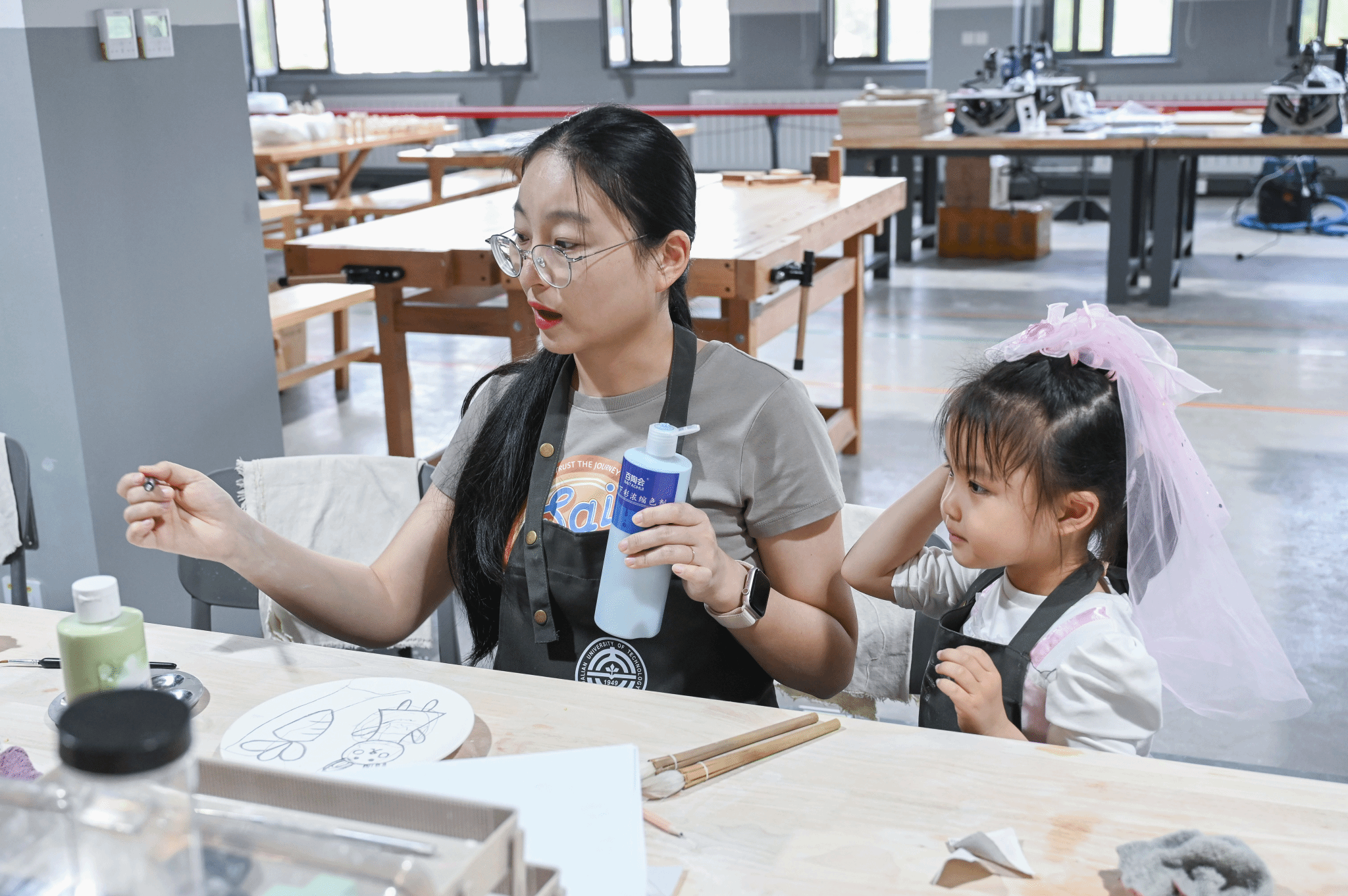 活动现场,工程训练中心工程美学指导教师詹宏亮现场指导,他深入浅出地为家长和小朋友们介绍陶艺的基本知识与制作技巧,并细致地演示了塑形、釉下彩绘等关键步骤。在詹老师的耐心引导下,“未小苗”们在家长的陪伴与鼓励下,纷纷大胆动手尝试。只见他们用釉下彩颜料在各种模具上精心绘制图案,揉泥、塑形、装饰……软陶在亲子协作中逐渐蜕变,有的成为可爱的生肖小动物,有的幻化成精致的花瓶、杯子等器具,每一件作品都凝聚着孩子们独特的想象力与创造力,现场充满了孩子们的欢声笑语,洋溢着温馨而欢乐的氛围。