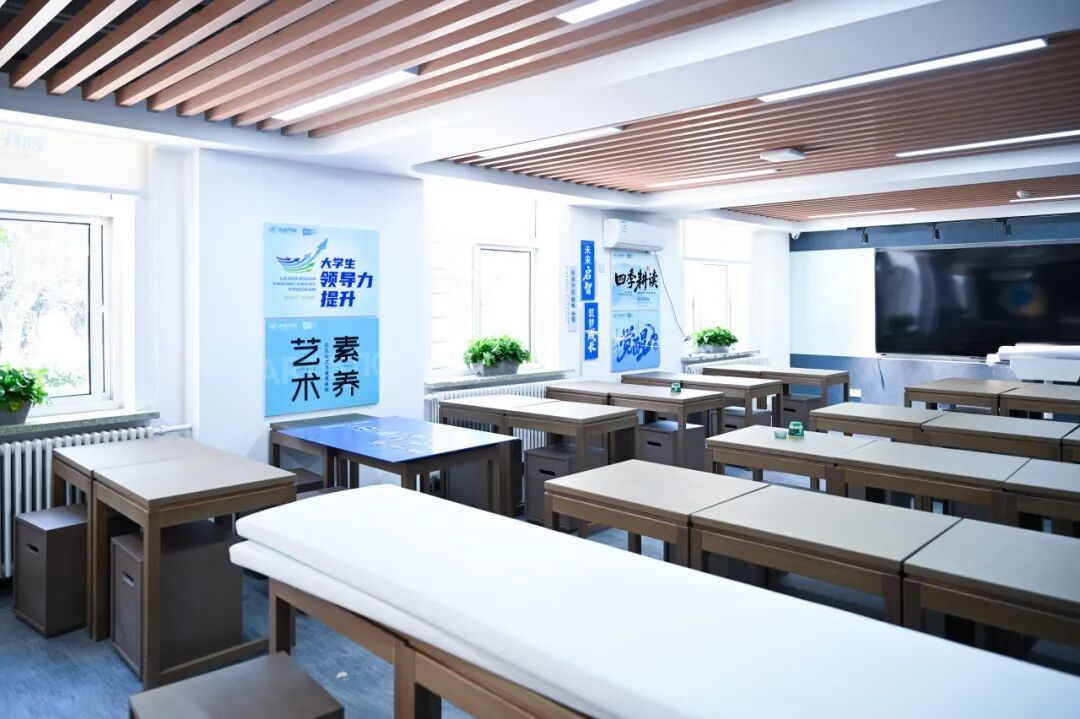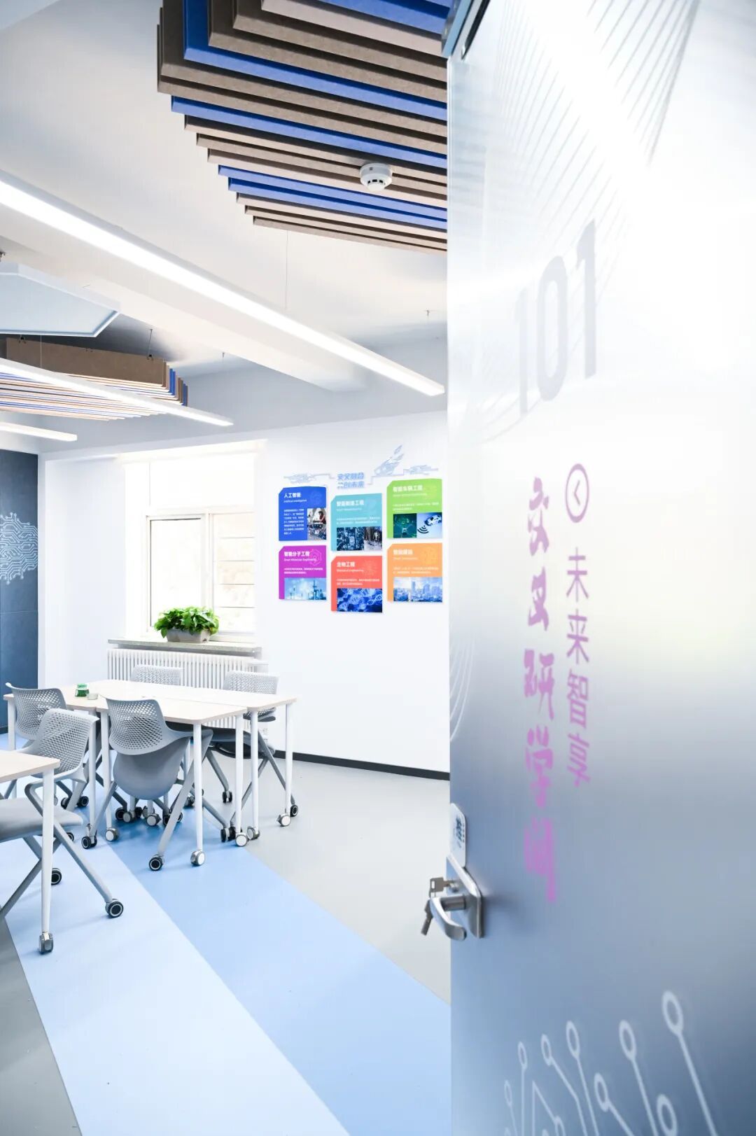 现在来到的是学科交叉的“思想实验室”。它聚焦 “智驱创新”,是多学科基础知识学习的核心区域,筑牢学生基础学习能力,激发跨界思维。