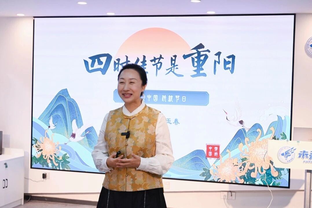 重阳的酒和茶已备好,四季耕读课程暖心的环节正式开始。课上我们邀请了辽宁省五一奖章获得者孙效里、学校关工委赵秋娜、鲍仲英三位退休老教师与我们共度重阳,赏茶品酒。在人文学院王玉春老师指导下同学们换上交领汉服,衣袂轻扬间,翻开了重阳的人文画卷,从九九重阳,九九归一的数字寓意,到古人登高、插茱萸、赏菊的习俗,再到“尘世难逢开口笑,菊花须插满头归”的诗句赏析。那些曾经只在课本里的诗句,忽然变得可感可知,重阳节不只是老年节,更是藏着中国人对自然、对长辈、对时光的温柔敬意。