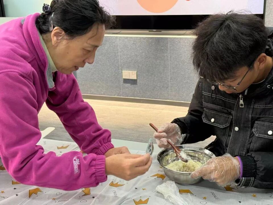 学校关工委的赵秋娜、鲍仲英两位老师亲自示范指导,将同学们分成5个小组同步开展操作。两位老师手把手教大家酿秋酒:酒曲要撒匀,搅拌时力度要适中,将放凉的糯米与适量酒曲充分拌匀,再细心压实,最后在中央戳出一个小洞。制作结束后同学们为容器封上保鲜膜,贴上写有小组名称的标签,满心期待着时间的馈赠。