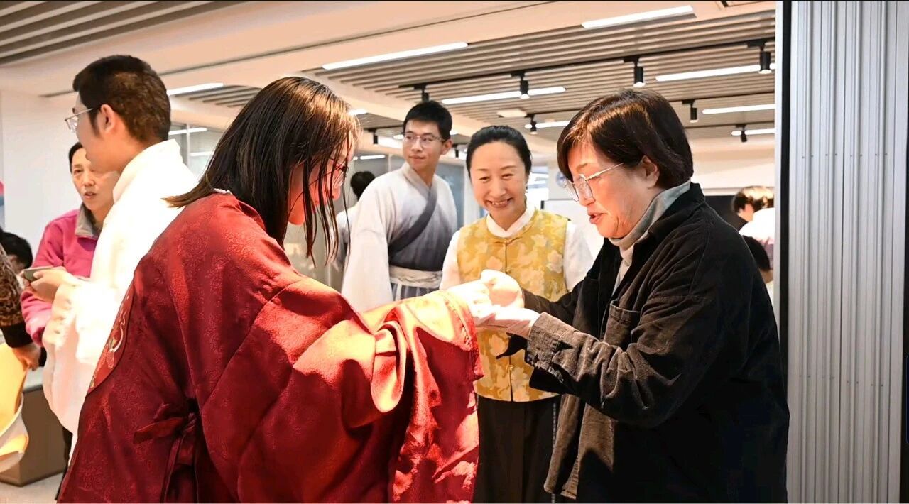 身着汉服,起身敬茶,同学们依次向到场老师敬茶。在“祝您安康、福寿绵长”的祝愿声中,孙效里老师也对课程进行总结,告诉同学们“人生就像今天大家酿的酒,每一步都很关键,需要沉淀才能散发醇香,请记住今天的酒香与温情,也在生活中感受中华优秀传统文化的魅力。”