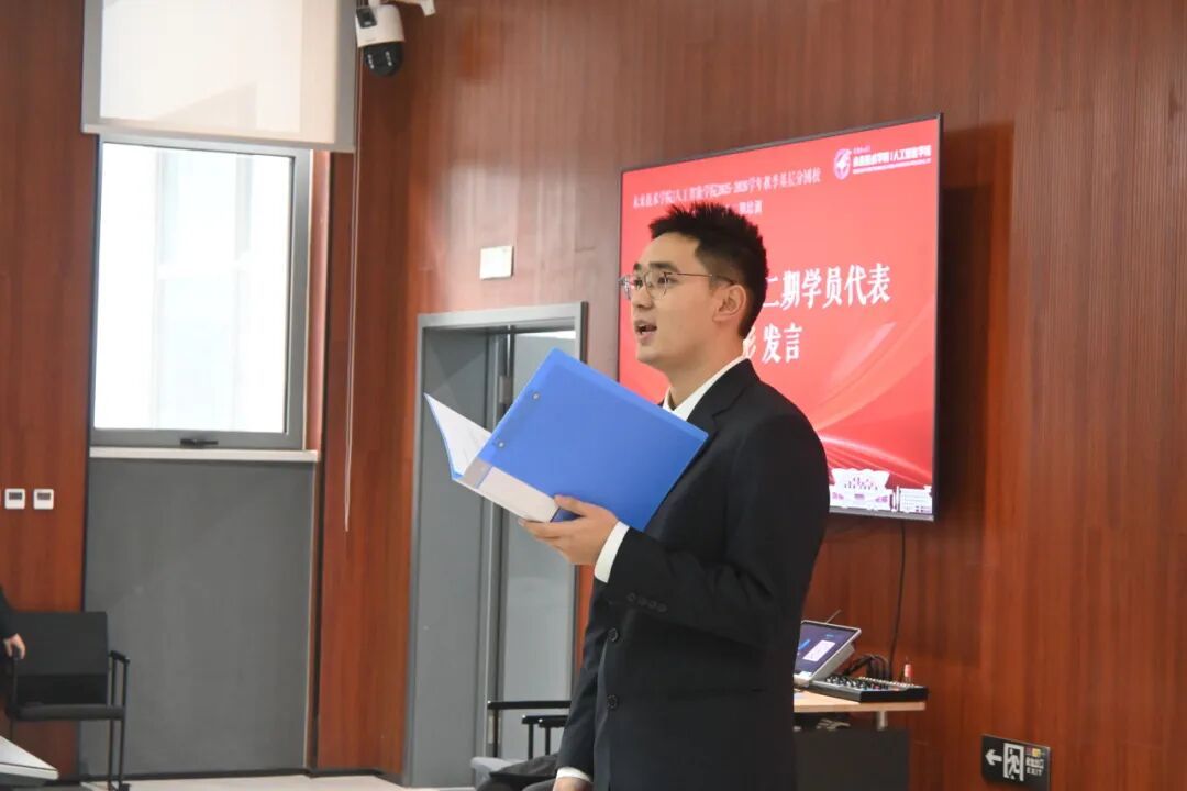 团委负责人陈雨潼老师宣读培养方案,传达学院党委、团委的高度重视。回顾往期培训成果,并对新一届学员寄语期望。第一期“青膺班”学员张胤结合自己在“青膺班”培训的真实感受与所获所得,号召同学们珍惜培训机会,在团校培训中为未来的发展打下坚实基础。本期“青膺班”学员徐彬代表参训同学表达了“与同学齐奋进、共成长”的坚定信念。仪式在激昂的共青团团歌中圆满落幕,青年学子们的使命之心与奋斗热情在此刻被点燃。