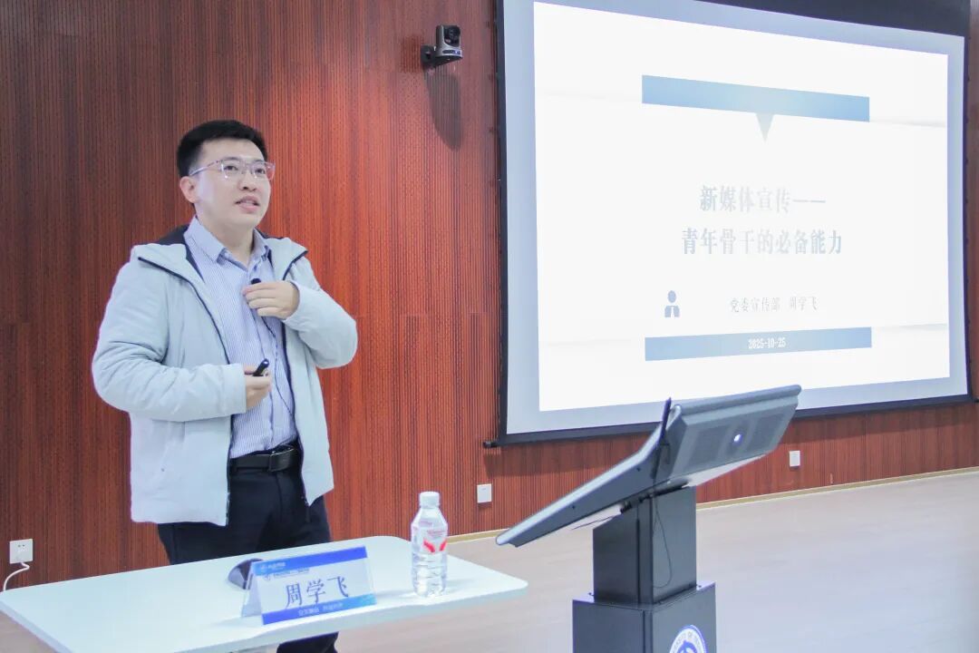 党委宣传部新闻中心新媒体宣传办公室主任周学飞老师以《新媒体宣传——青年骨干的必备能力》为题授课,结合典型案例解答“为什么做”“能做什么”“如何做好”三大核心问题。他重点讲授了“热点嗅觉”“内容策划”“多端协同”等关键技能,帮助学员清晰构建从“新手”到“优秀宣传人”的成长路径,激励青年用镜头与文字传递青春之声。