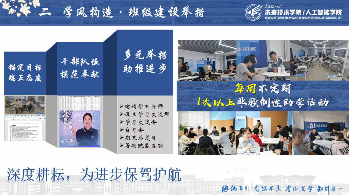 近日,大连理工大学2024-2025学年本科生先进班集体获评名单公布,未来技术学院未来2304班和智创2302班获得本科生先进班集体称号,以勤奋刻苦的学习态度,积极向上的学习风气,发挥出学生集体典型的激励和示范作用。