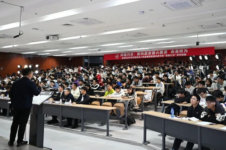 为勉励2025级新生同学弘扬科学精神,面向国家重大需求,激励学生在今后的学习与探索中,勇敢追求自己的梦想,未来技术学院党委举办同题共答:面向国家重大需求——未来何为为主题的新生入党启蒙教育暨未来书院未来觉醒计划系列课程。通过信仰出题、专家破题、榜样学子答题、产业先锋圆桌论坛与未来学子答题等环节,共同探寻新时代青年的使命担当与前行方向。