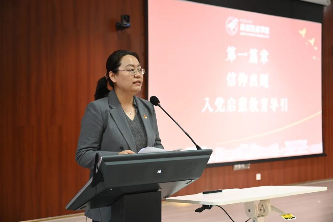 课程伊始,未来技术学院党委副书记、副院长,未来书院副院长孙智妍作为引述人开展入党启蒙教育导引,她围绕习近平总书记的重要讲话和系列重要回信精神,提出“面向国家重大需求”是时代出给青年一代的信仰之题,以此开启今天这场“同题共答”之旅。