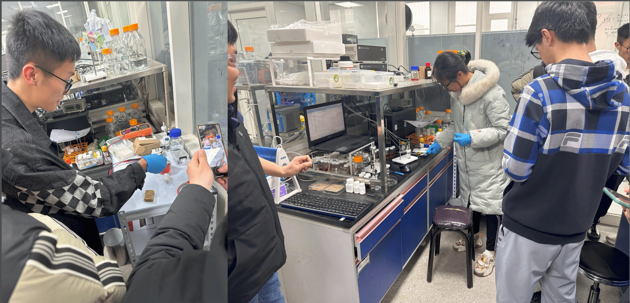 同学们在高垒博士和特聘副研究员李福胜老师的带领下,分别开展了仿生材料和绿色能源相关的科研实验体验,近距离感受到了化工学科前沿科研的独特魅力。