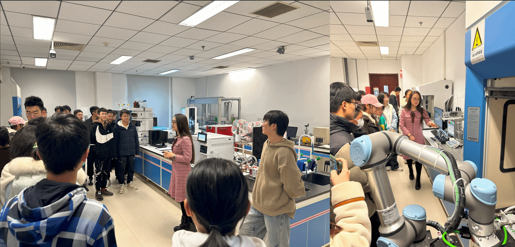 近日,未来技术学院2023级同学们参加了由化工学院举办的人工智能+化工主题开放日活动。活动以实地体验的形式引导学生走进精细化工国家重点实验室,近距离观察、体验和感受化工学科的奇妙之处,激发同学们对化工专业的学习热情和科研兴趣,让同学们对智能分子工程充满期待。