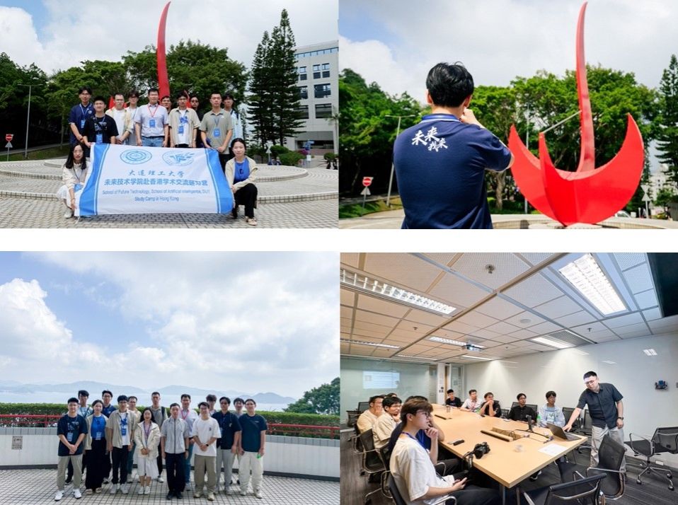 在香港城市大学,同学们首先参观了城市大学校园景观,随后在Linyan Li教授的主持下,研学营的同学们和香港城市大学的教授和同学们开展小班研讨,计算机学院副院长陈明华致欢迎辞,未来技术学院王立君老师介绍了大工未来技术学院及人才引进政策。在交流环节中,大连理工大学-香港城市大学联培博士张颖异和同学们分享了自己在城大的学习生活体验,他提到,香港城市大学的学术环境开放包容,教师团队不仅学术造诣深厚,且非常注重与学生的沟通与指导。此外,学校提供的交流机会丰富多样,不仅有机会与国际知名学者进行面对面交流,还能参与各类学术会议与研讨会,拓宽学术视野。